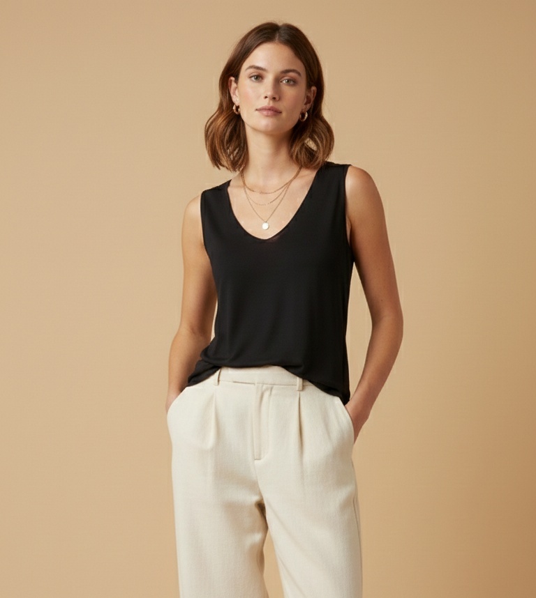 Top Perlé Negro