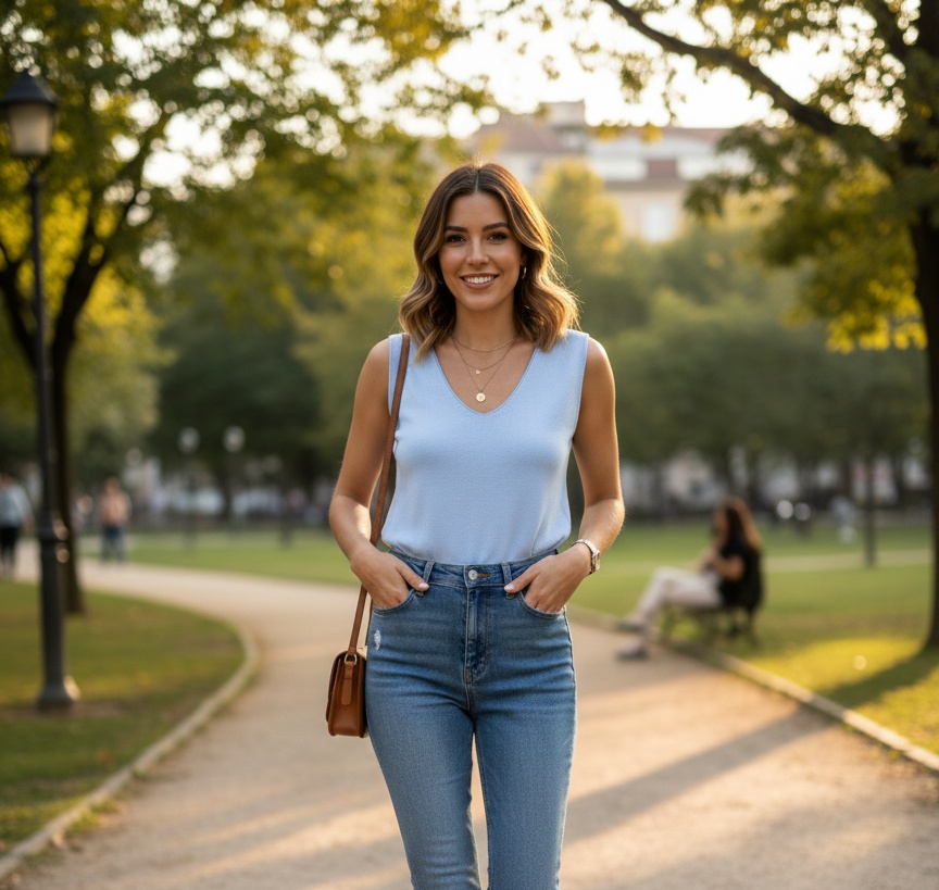 Top Perlé Cielo