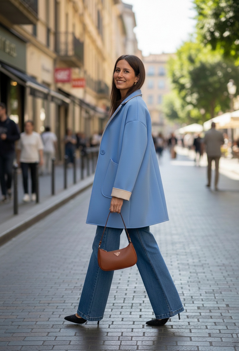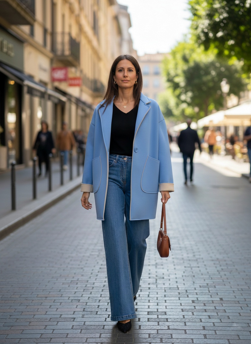Abrigo de neopreno con solapas y bolsillos en la parte delantera.