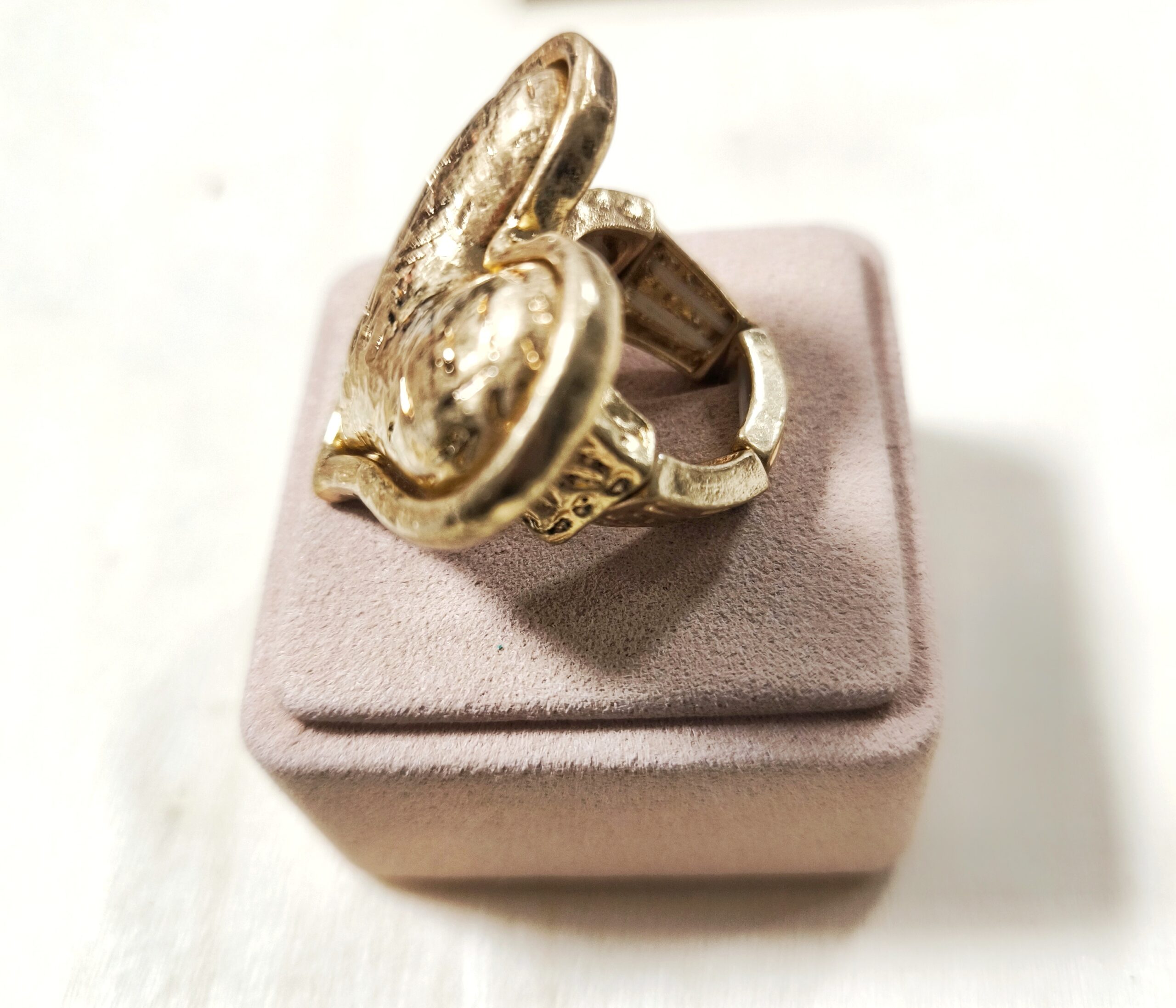 Anillo de acero en forma de corazón con relieve, lleva goma en la parte interior para que se ajuste mejor al dedo.