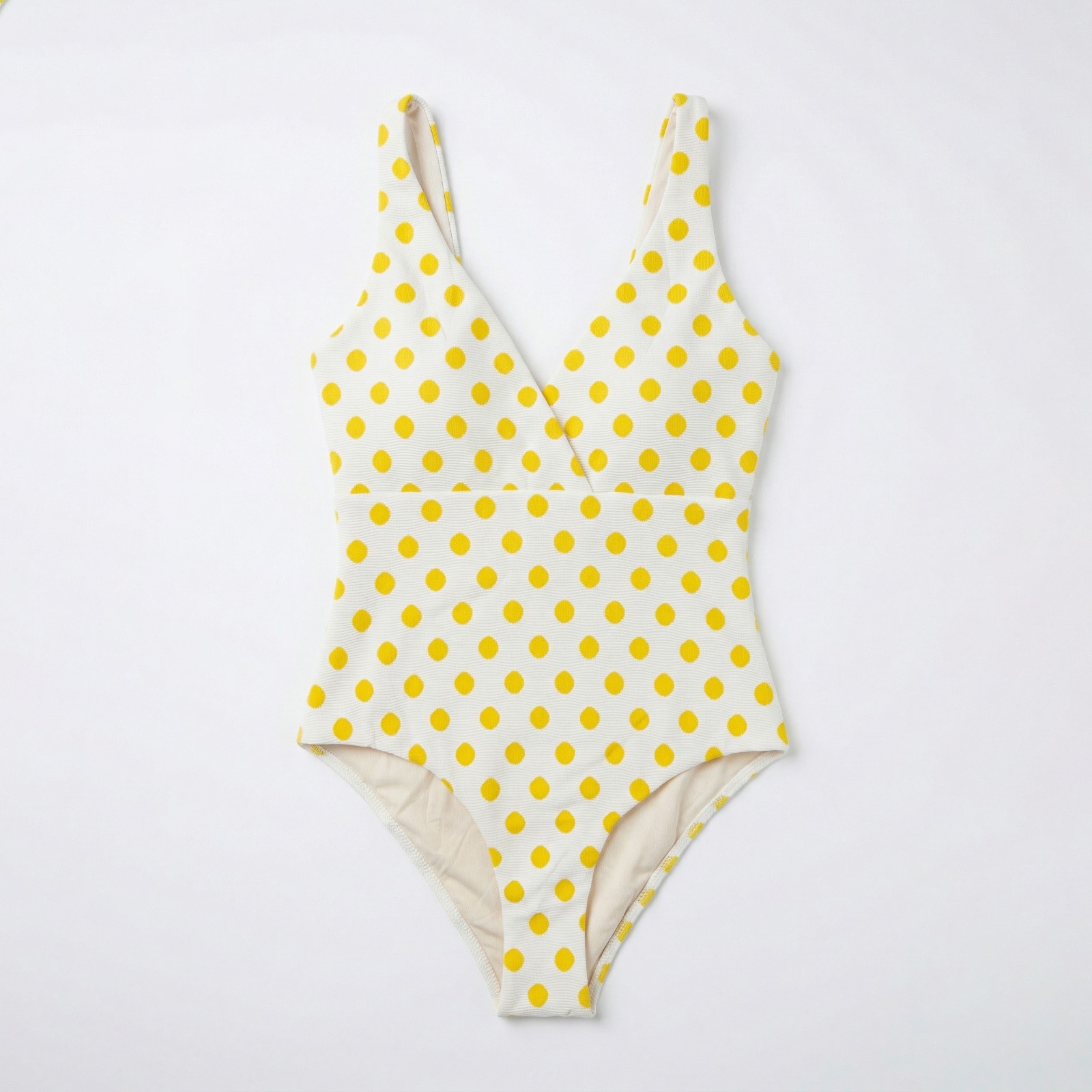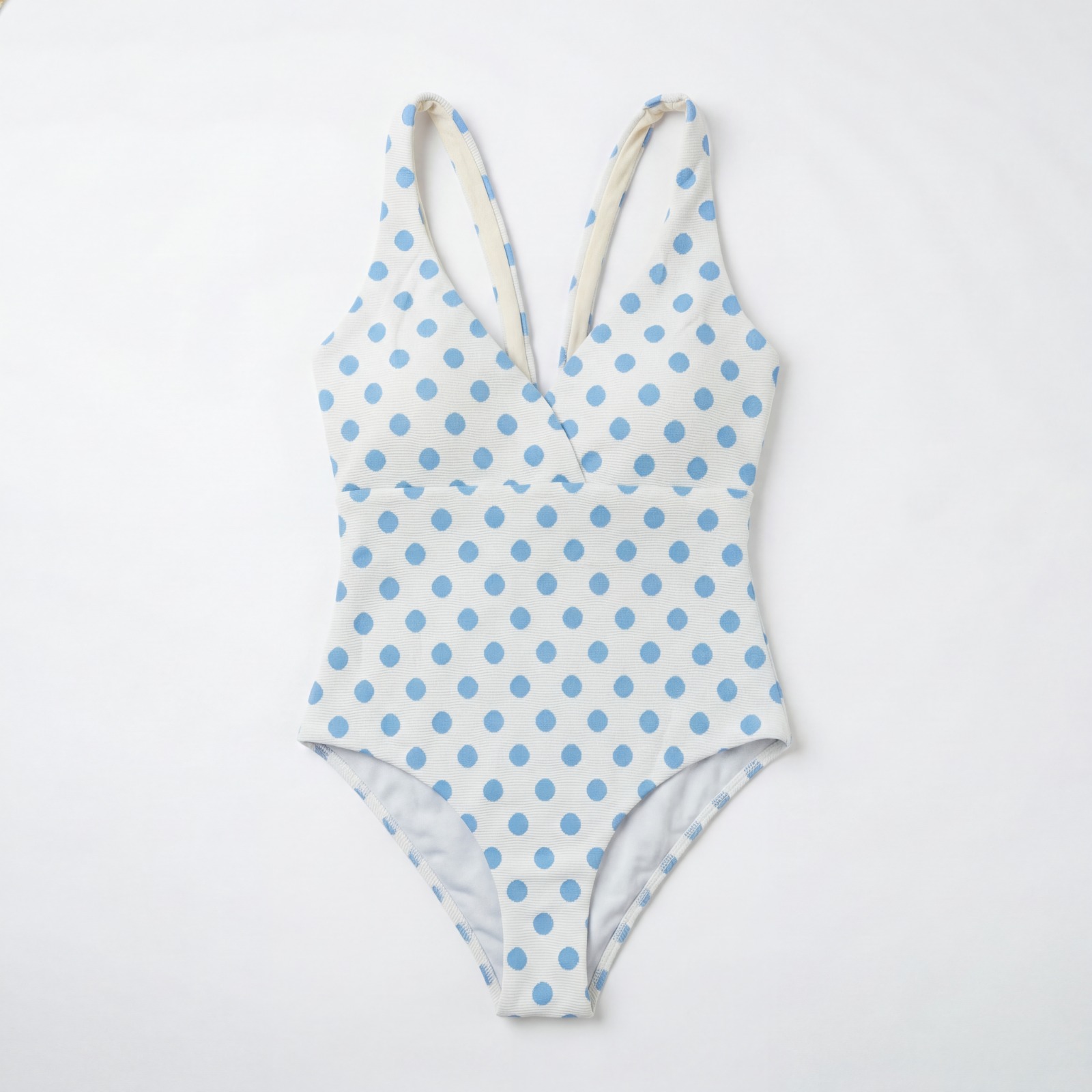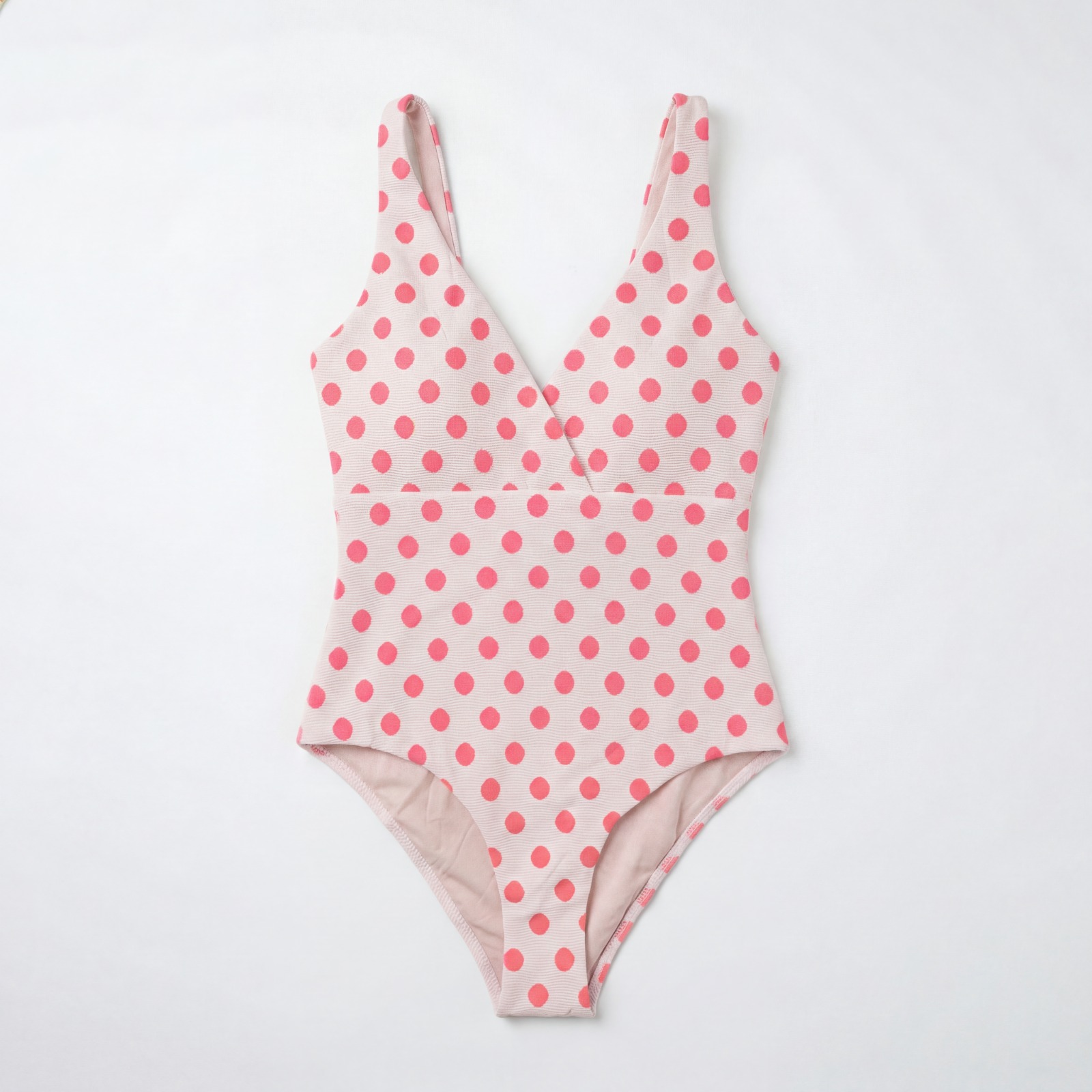 Bañador con estampado de lunares, el pecho tiene relleno para mayor comodidad y tirantes ajustables.