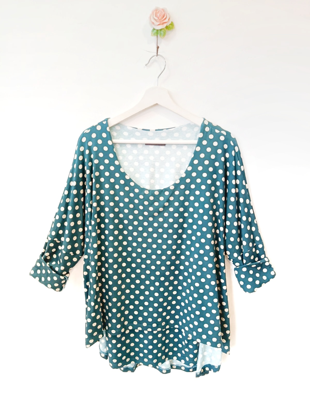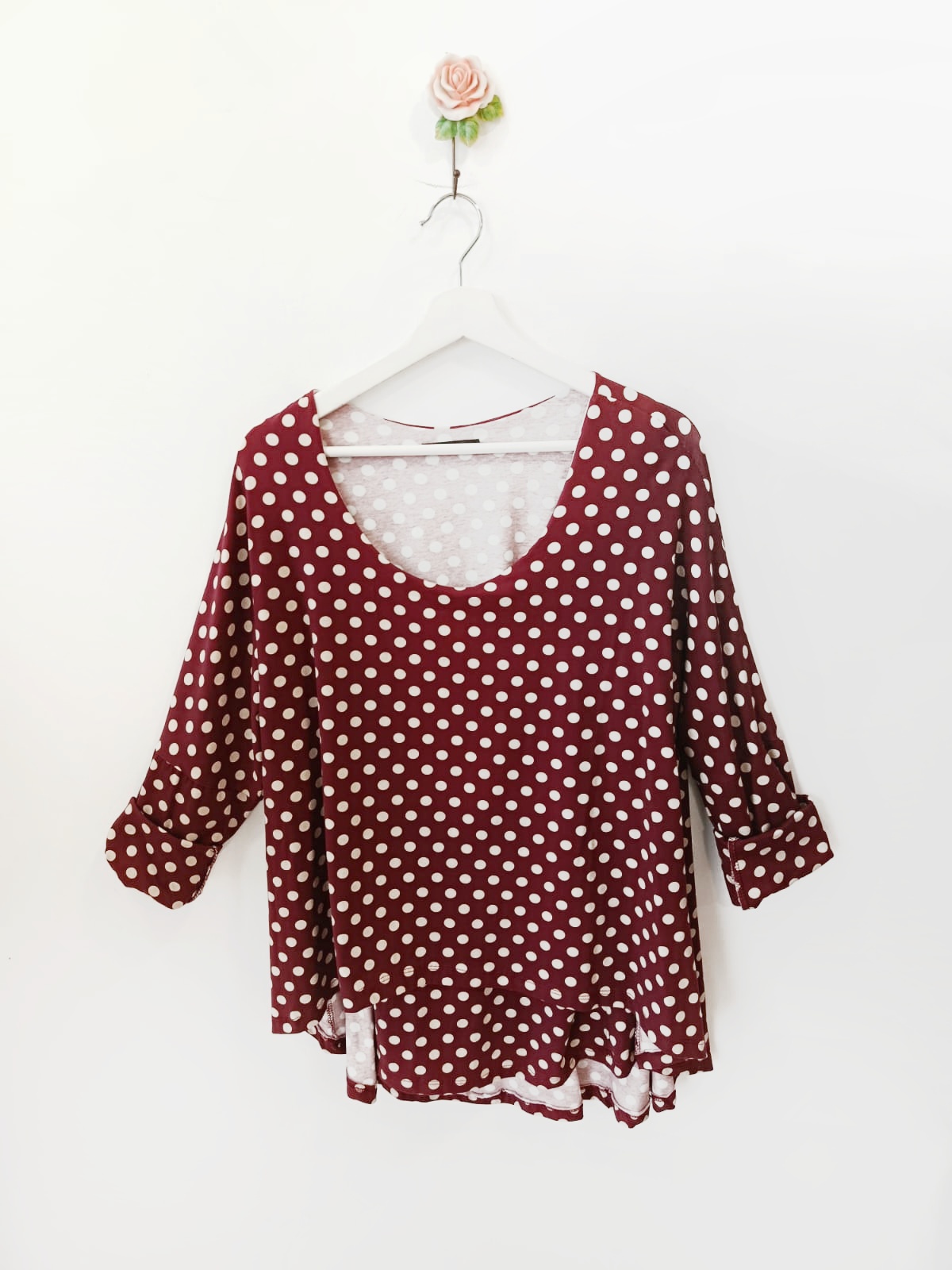 Blusa de algodón con estampado de lunares, escote amplio y de manga larga.