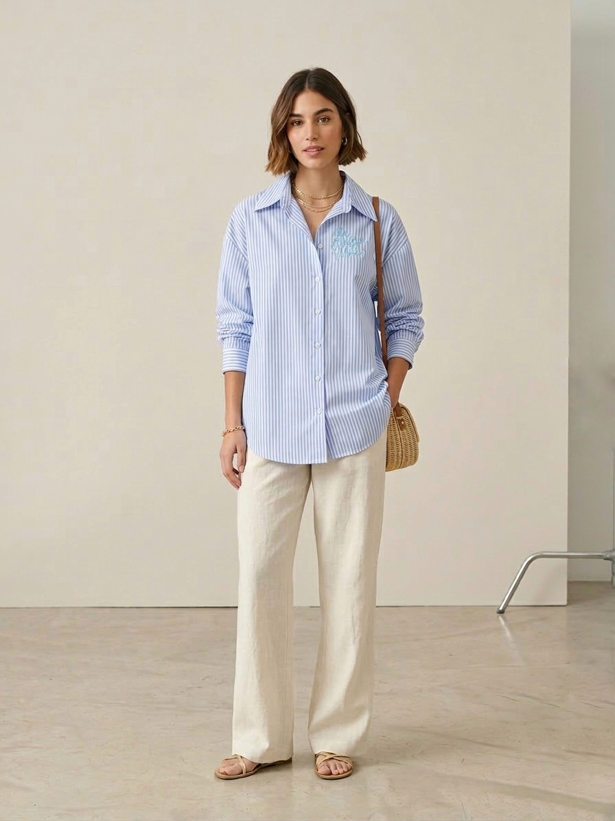 Camisa clásica de rayas, con los dibujos en el pecho en la parte delantera y en la espalda.