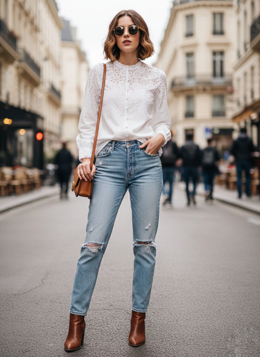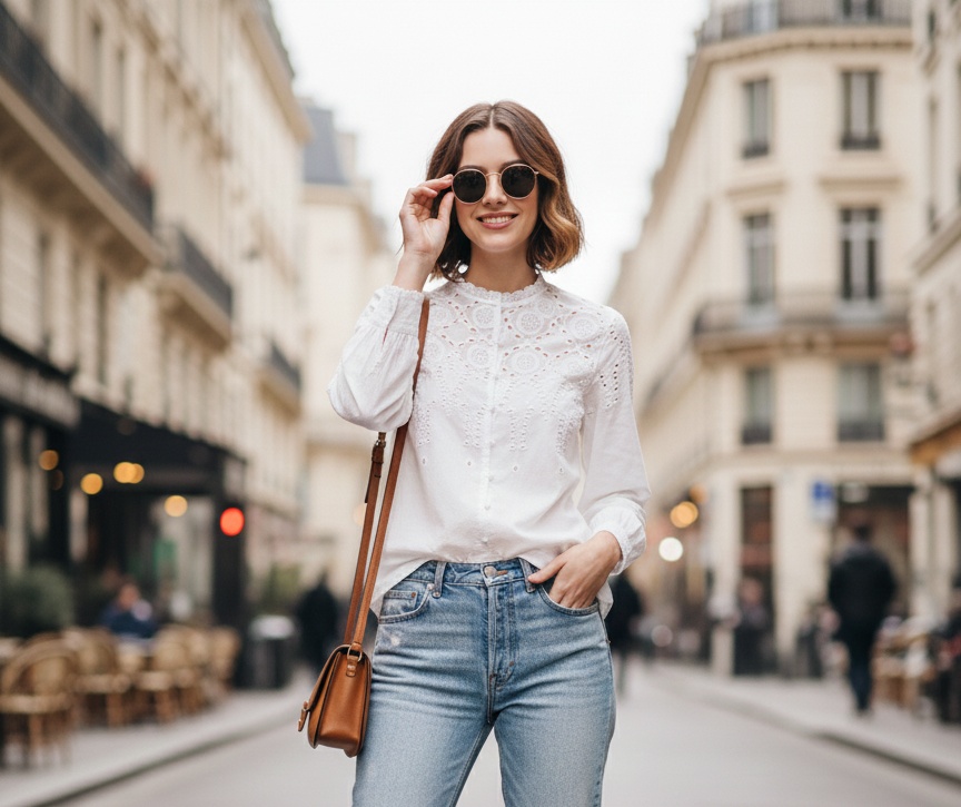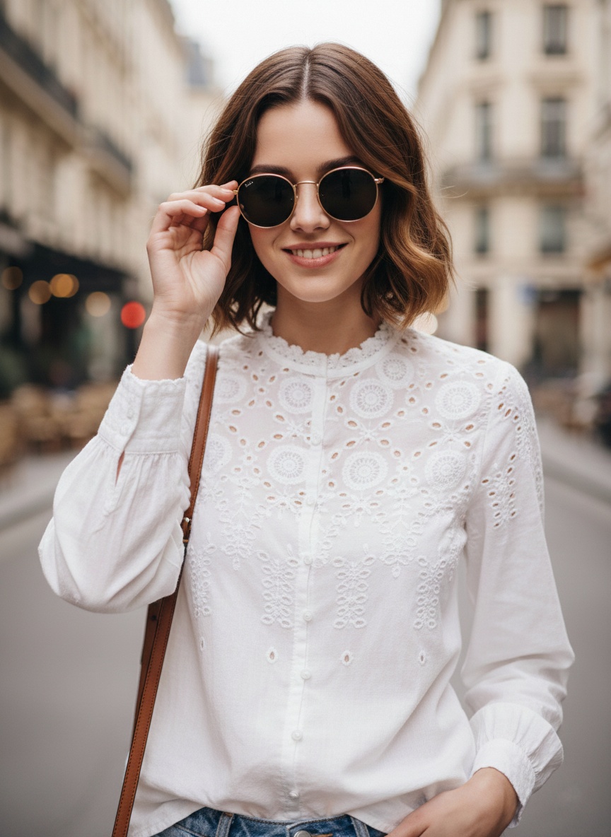 Camisa de algodón con cuello mao y con estampado troquelado. Los botones están forrados.