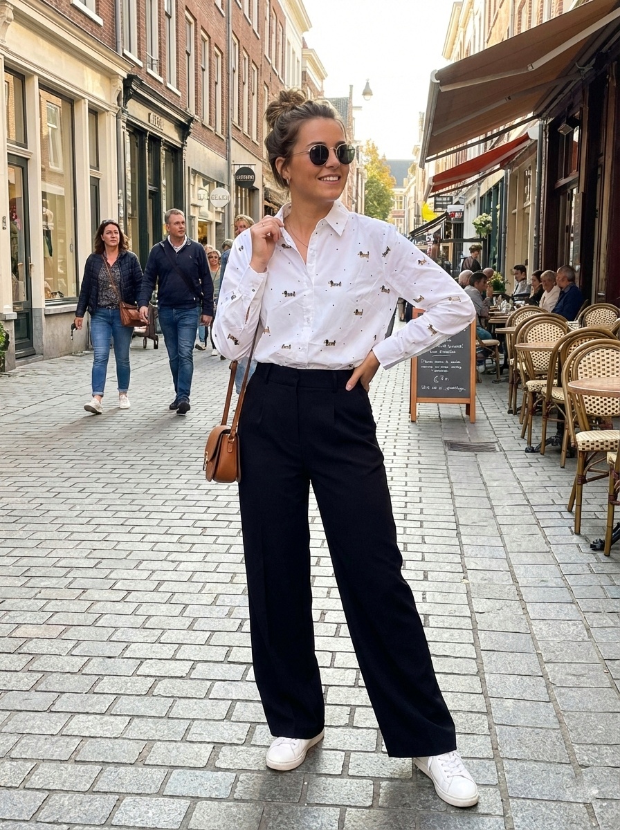 Camisa de algodón de corte clásico. La camisa tiene dibujos de perros salchichas, lo que la hace tan especial.