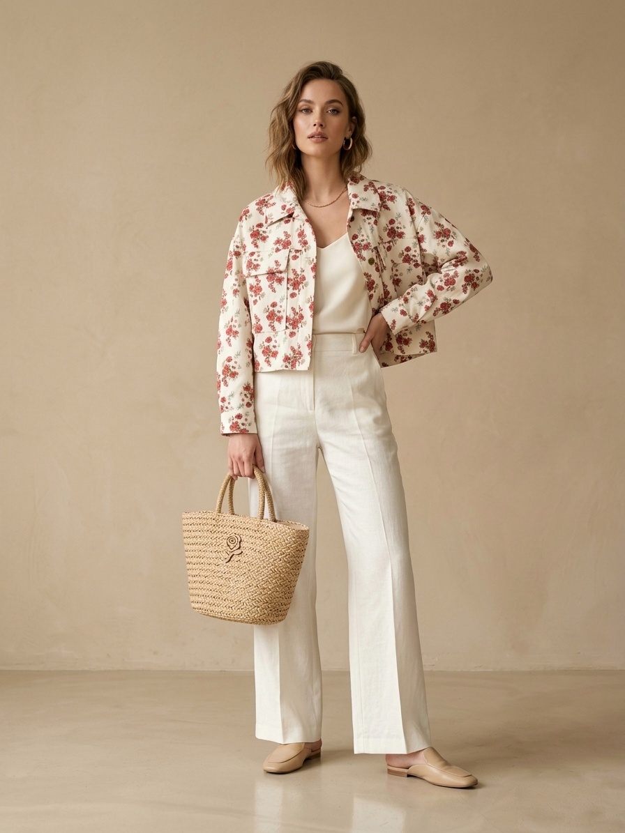 Cazadora tipo loneta, con corte recto y ligeramente oversize. Tiene dos bolsillos en la parte frontal y cierre con botones.