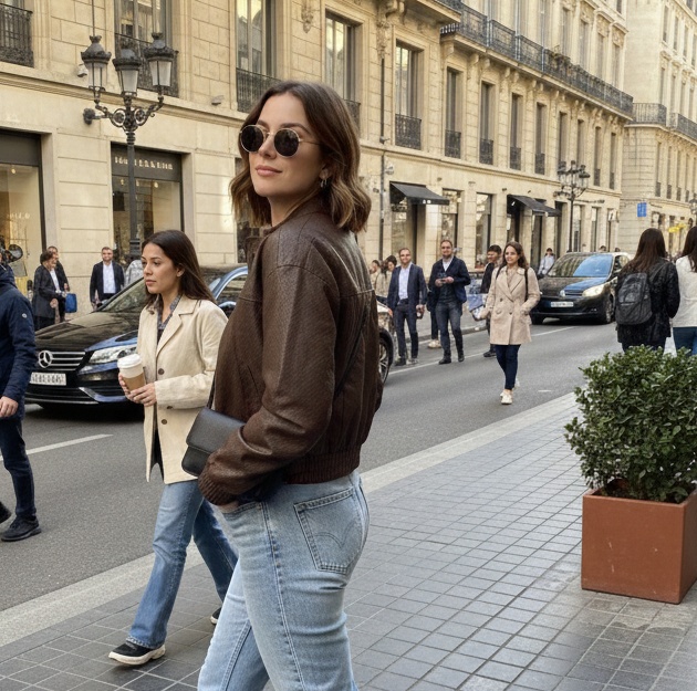 La cazadora tiene cremallera en la parte delantera y dos bolsillos en los laterales.