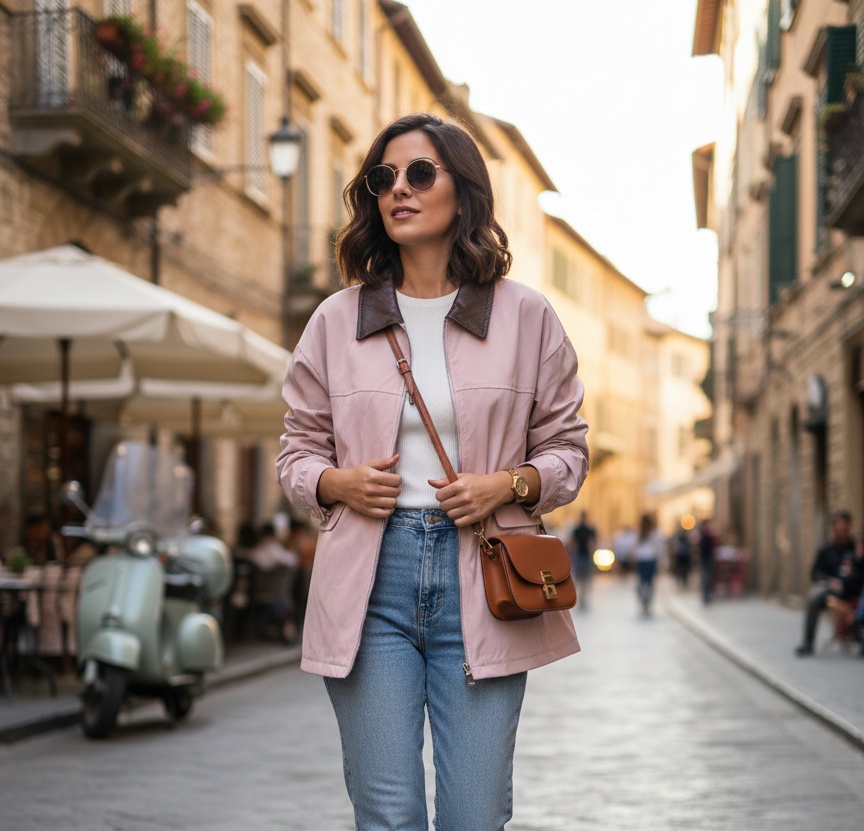 Cazadora estilo cortavientos con detalle de las solapas de polipiel en marrón chocolate.
