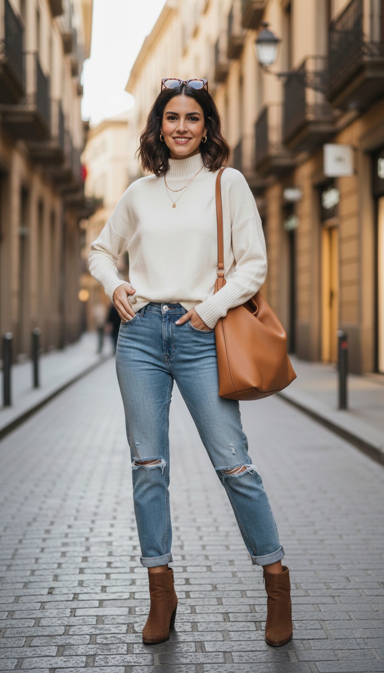 Jersey de punto suave y elástico, cuello chimenea de tejido de punto de canalé, puño alto de tejido de punto de canalé.