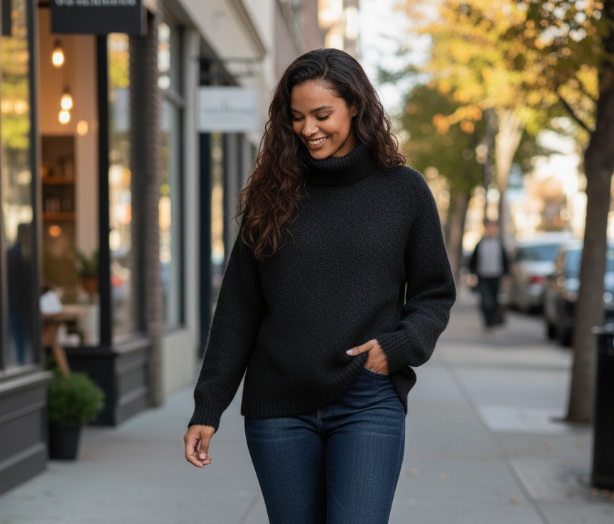Jersey de punto de alpaca, con cuello alto y super suave.
