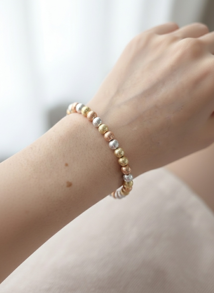 Pulsera de acero de bolitas de tres colores.